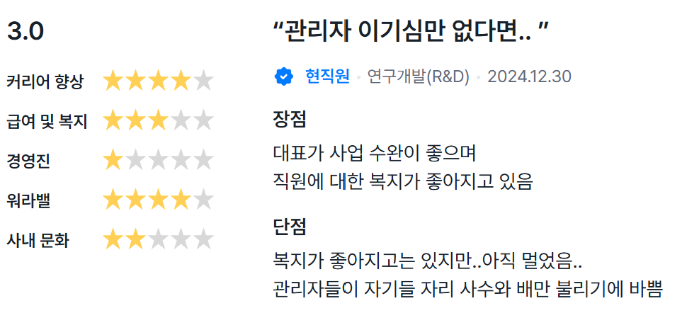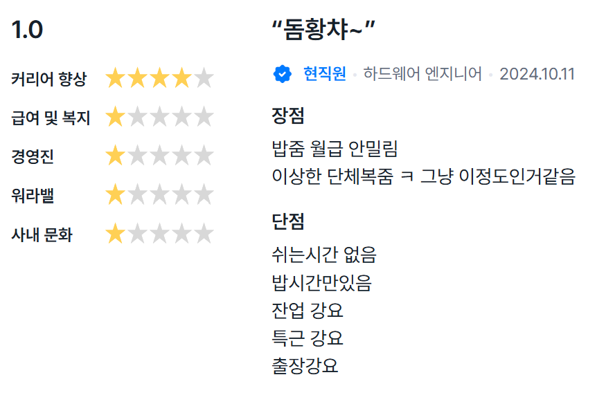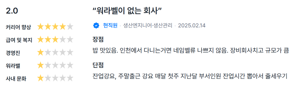 The food is delicious. If you commute from Incheon, the company’s name value isn’t bad. For an equipment company, it’s pretty large-scale.